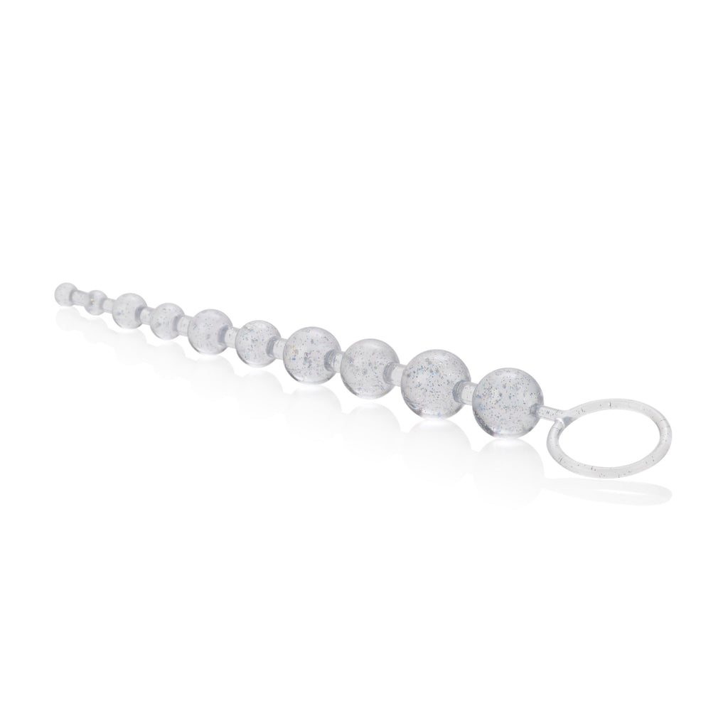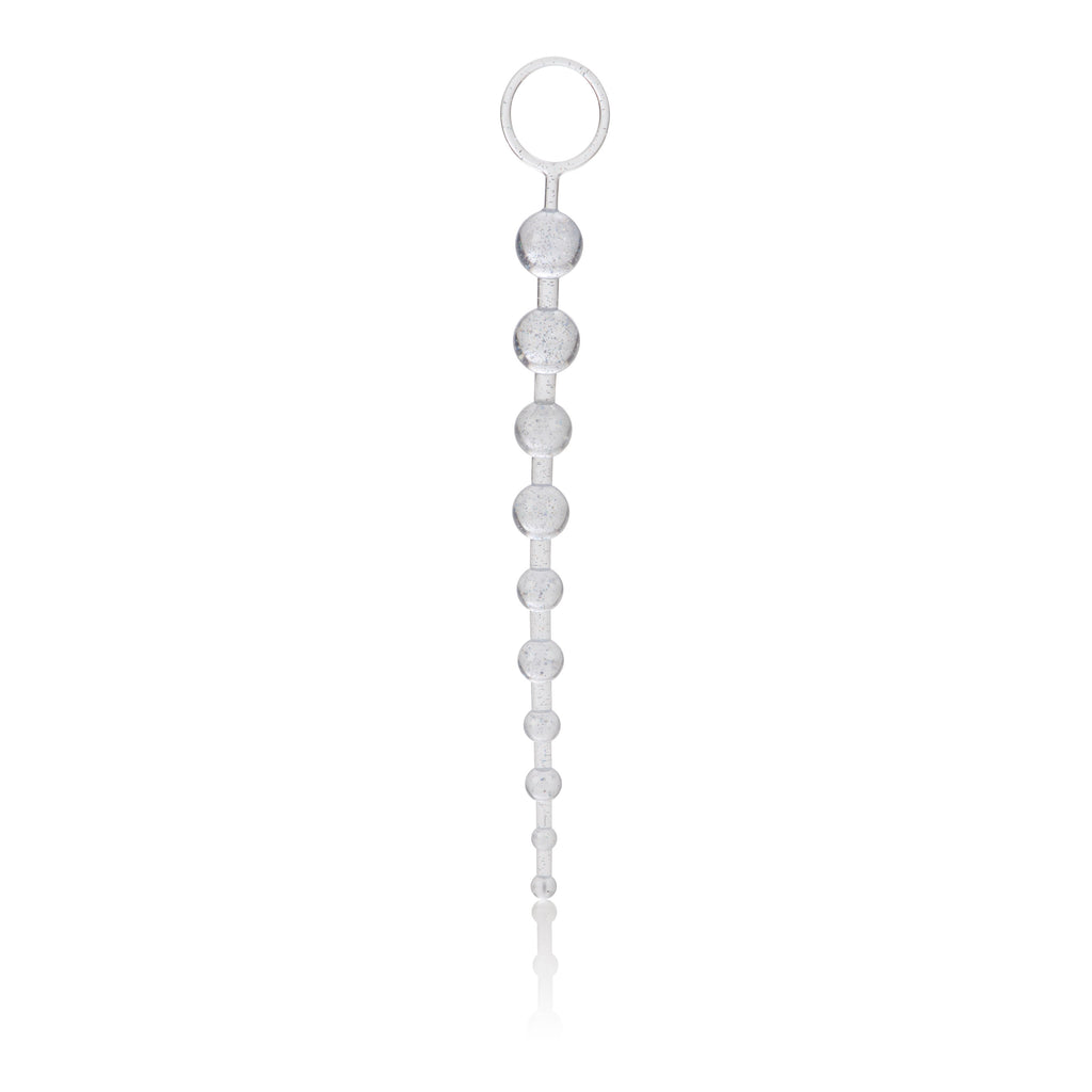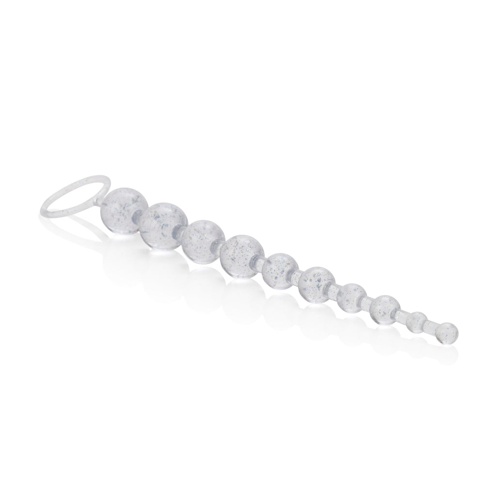 Glittered and ready for action. Graduated durable beads with a sturdy retrieval ring.