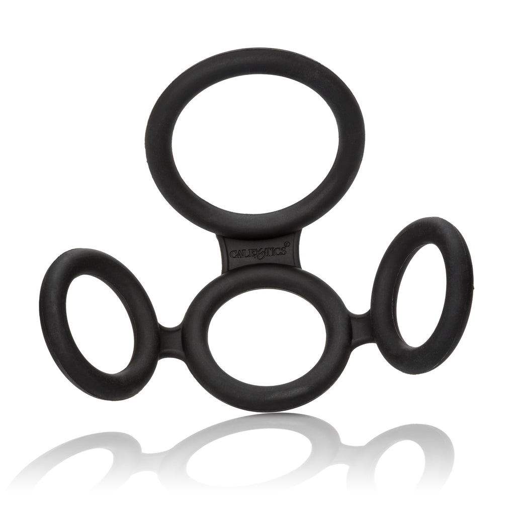 Designed for the erection aficionado, this four-point erection system creates support at its finest. Stretchy and durable silicone means comfort that lasts. Four rings of pleasure wrap around you in pleasurable constriction to create sensations that you wont soon forget. Made from durable, stretchy silicone, this enhancement system is incredibly comfortable and built to last. The largest ring slides around the base of your manhood, while the next ring grasps your shaft. The dual testicle rings wrap individually around each, to slightly constrict and separate. Held securely where it counts, your erection is sure to last longer than ever. As the Wave after magnificent wave of orgasmic pleasure await you with this Full Erection Spreader. Comfort, stamina, and performance come together in one complete package. Enjoy all that your erection has to offer with this precision crafted ring.