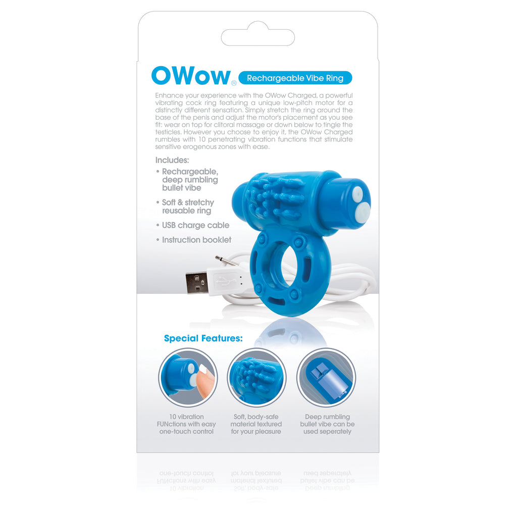 The Charged OWow is the ultimate rechargeable vibrating cock ring, featuring a brand new low-pitch motor for a distinctly different sensation that both partners can feel deep inside. This powerful sex toy for couples boasts 10 penetrating vibration and pulsation functions that rumble, rather than buzz, and provide an undeniably more satisfying experience. Powered by the famous Vooom bullet, the Charged OWow stretches wide to fit most sizes thanks to the rings soft 100% body-safe SEBS material and fits snug, but not too tight, for an enhanced experience. To enjoy, simply stretch the ring around the base of the penis or penis and testicles (his choice!) and adjust the motor as you like it: wear it on top for rumbling clitoral massage or wear it underneath the penis and testicles for pleasant pressure with added vibration. However you choose to enjoy it, the Charged OWow is easily powered up with a USB charge cable (included) for a 60+ minute vibration time and is completely waterproof so you can take your new favorite couples toy into the bath or shower! And with a 2-year limited warranty, you can enjoy Charged OWow with confidence and get the most our of your pleasure experience. Rechargeable 10-function vibrating cock ring Powered by deep, rumbling Vooom technology Lab-tested, body-safe SEBS and ABS 100% waterproof Soft and stretchy ring fits most sizes