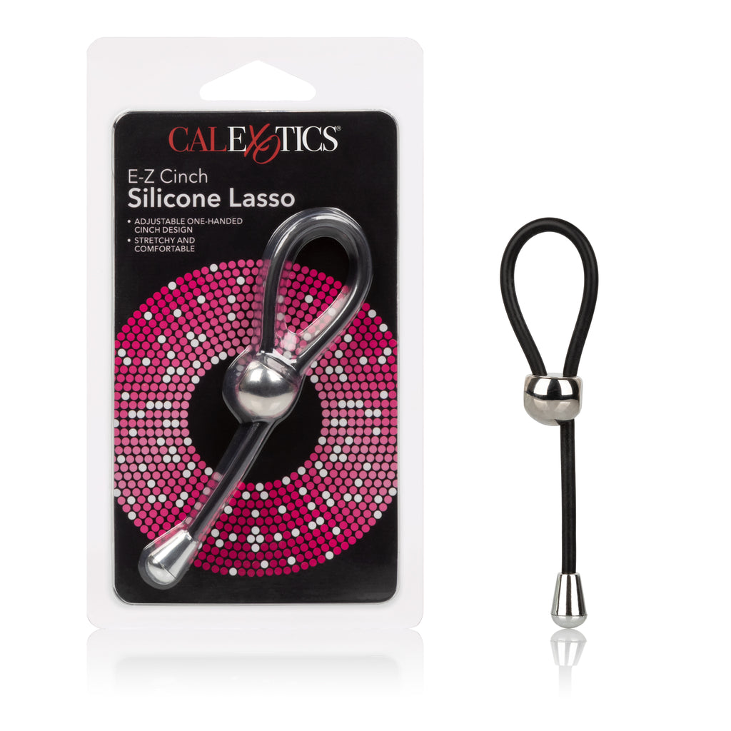 Enhance your pleasure tool and enjoy adventurous stimulation with the EZ Cinch Silicone Lasso Ring. The easy-to-use cinch is made with a stretchy lasso ring and unique tightening bead for convenient one-handed cinching. The pleasure ring works to maximize pleasure and increase girth to make playtime an orgasmic experience for any couple. Enjoy more powerful pleasure and increase stamina by increasing blood flow to your pleasure tool with the teasing cinch. The hypoallergenic material pairs perfectly with any water-based lubricant. Features & Benefits: Superior Support Hygienically Superior Silicone Stretchy & Comfortable Body Safe, Unscented, & Phthalate Free Easy to Adjust One-Sided Cinch Design Materials: Silicone, ABS Plastic/ Metallic Plating, Nickel-Free Alloy