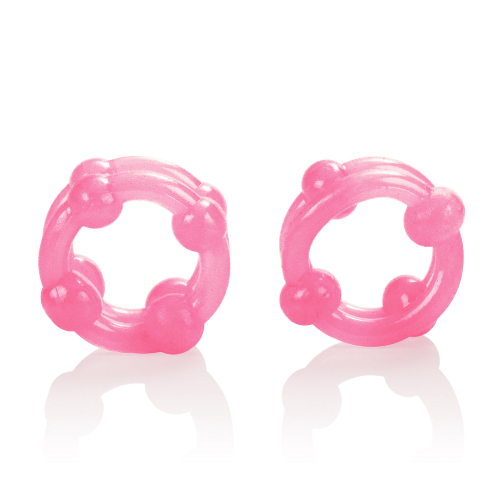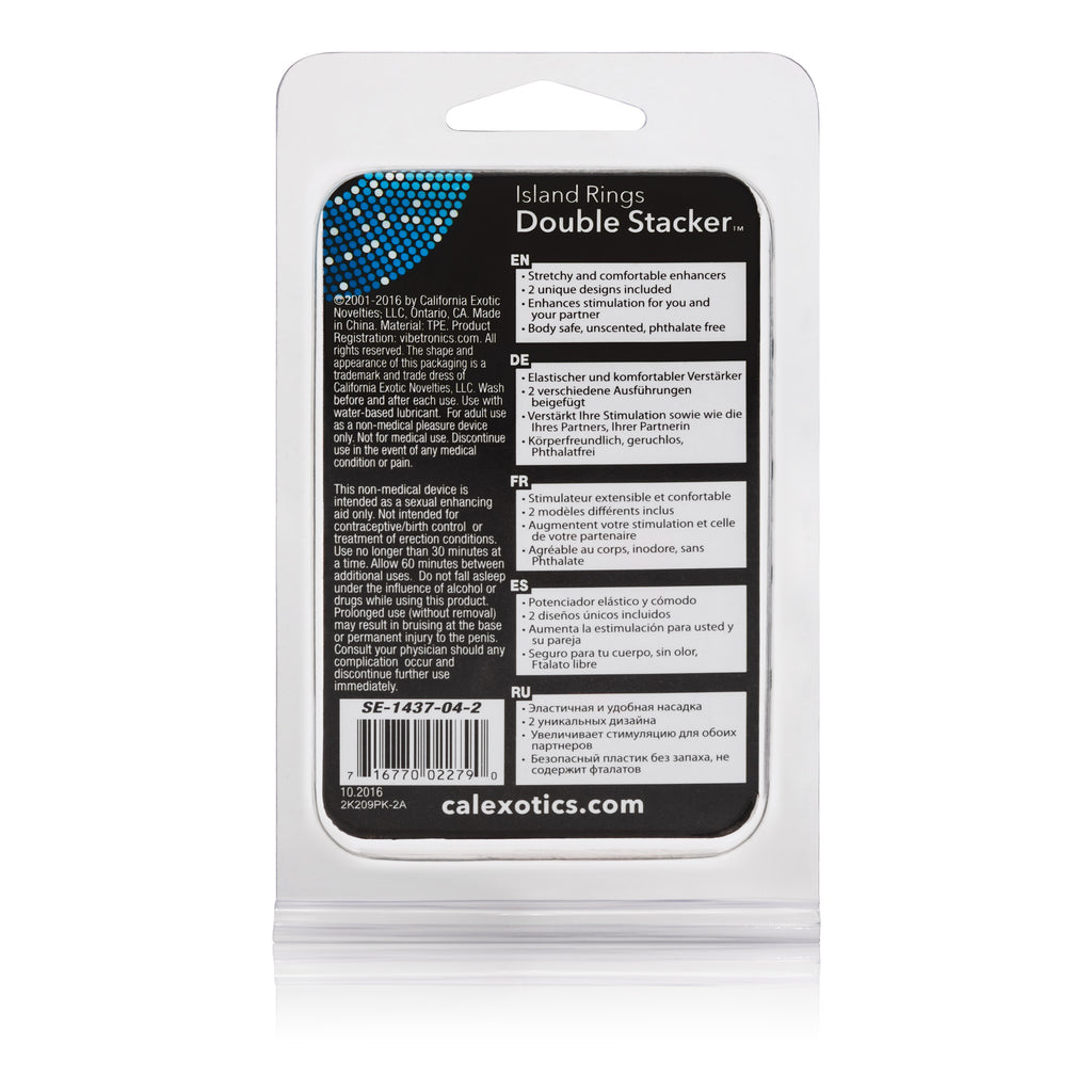 Enjoy twice the delicious pleasure with the Island Rings Double Stackers. The versatile, easy to use erection enhancer provides double support for increased stamina, peak performance and extended play. The super stretchy glow-in-the-dark rings are supplied in a pair and are designed for comfortable wear during prolonged intimate encounters. The stackers boast smooth contours and sensual stimulation beading, for maximized sensitivity and unlimited erotic satisfaction. The rings are made from soft and smooth, TPE, with a hot pink finish, and features two connected rings for maximum support. The exotic stretchy cock ring duo measure 0.75/2 cm and are adorned with sensuous twists and stimulation beads. To use, select your preferred ring and simply slide the erection keeper on to the erect penis, and prepare to enjoy elevated ecstasy. To increase the pleasurable sensations and tingling arousal even further, always use a quality lube with this toy. Explore your wildest hot dreams and secret fantasies with these rings. The flexible and durable support rings are perfect for first-time and experienced users and great for spontaneous, intimate explorations. Slip on the dual stack enhancer and indulge in tantalizing super-sized pleasure, whenever you are in the mood for intimate fun. Before and after every use, remember to clean the adornment rings with warm soapy water, or with a toy cleaner spray. Ring Diameter: 0.85" / 2cm