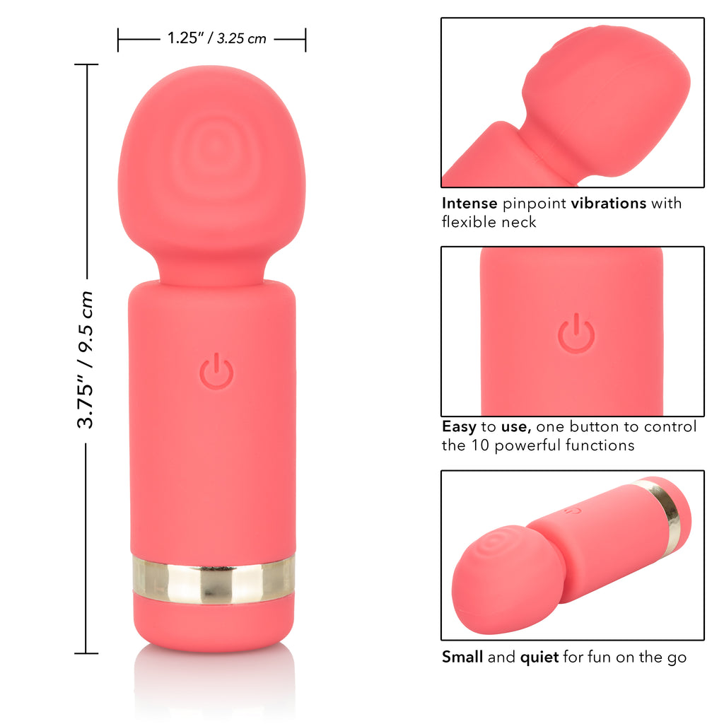 Slip the tickling Slay Exciter into your purse or handbag for knee-shaking pleasure wherever you go. The mini wand massager fits between your fingers to let you deliver pinpoint tantalization and thrill with flexible vibrations. Get playful while you flicker through 10 indulgent vibration, pulsation and escalation functions with the easy-touch control button. The ultra-plush silicone and wide flexible head are great for exploring sensual sweet spots and intimate pleasure points with ease. Effortlessly control pure pleasure with an easy-touch silicone button and hold for 3 seconds to turn on or off. Use the smooth single button control to enjoy up to 1.5 hours of vibrating pleasure. Charge up your passion in only 2.5 hours by plugging the provided USB cable into the self-sealing charging port on the back of the massager. The slim massager discreet 4-inch size makes it perfect travel companion, letting you embrace radiating pleasure wherever your fantasies take you. Features & Benefits: 10 Functions of intense vibration, pulsation, and escalation. State-of-the-art memory chip resumes on last function used. Security travel-lock - hold for 3 seconds to turn on or off. USB rechargeable - charging cord included. Complete charge in 2 hours. Runs for 1.5 hours on high speed and 2 hours on low speed.