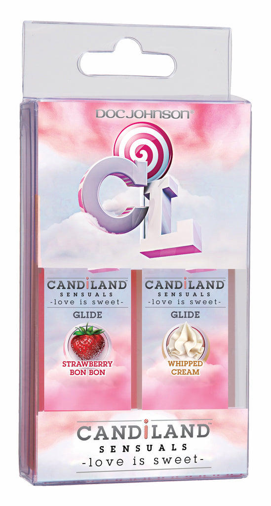 Satisfy your craving for a delicious adventure with CandiLand Sensuals Glide! Long lasting for sweetened lovemaking this premium water-based formula will have you licking and loving all night long! Sugar free and Vegan friendly. Two 1-oz. bottles: Strawberry Bon Bon and Whipped Cream.