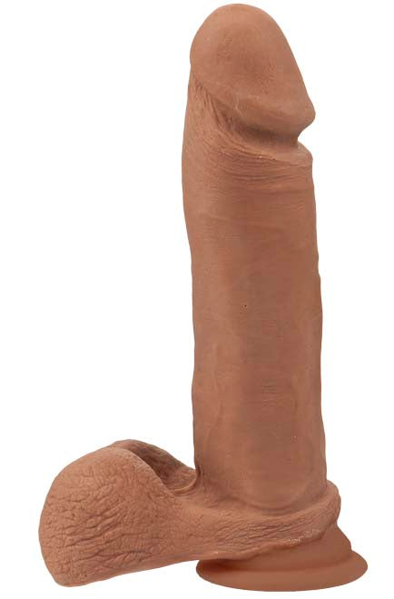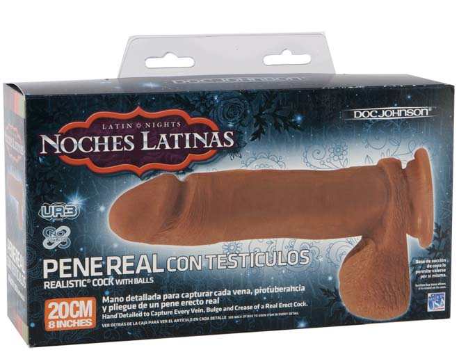 Noches Latinas 8in Ur3 Realistic Cock These beautiful caramel-colored dongs will bring you to new levels of sexual satisfaction. The Noches Latinas latex-free UR3 Pene Real Con Testiculos was developed with a groundbreaking dual-density formula. The realistic cock and balls are formed with two layers hard on the inside and soft on the outside - for the most realistic experience on the market. It even warms to the touch and recovers its shape just like a real cock! All packaging for our Noches Latinas line is written predominantly in Spanish and marketed for Spanish-speaking toy users. These items are proudly made in the USA exclusively by Doc Johnson. UR3 Non-phthalate TPE Sil-A-Gel Made in the USA.