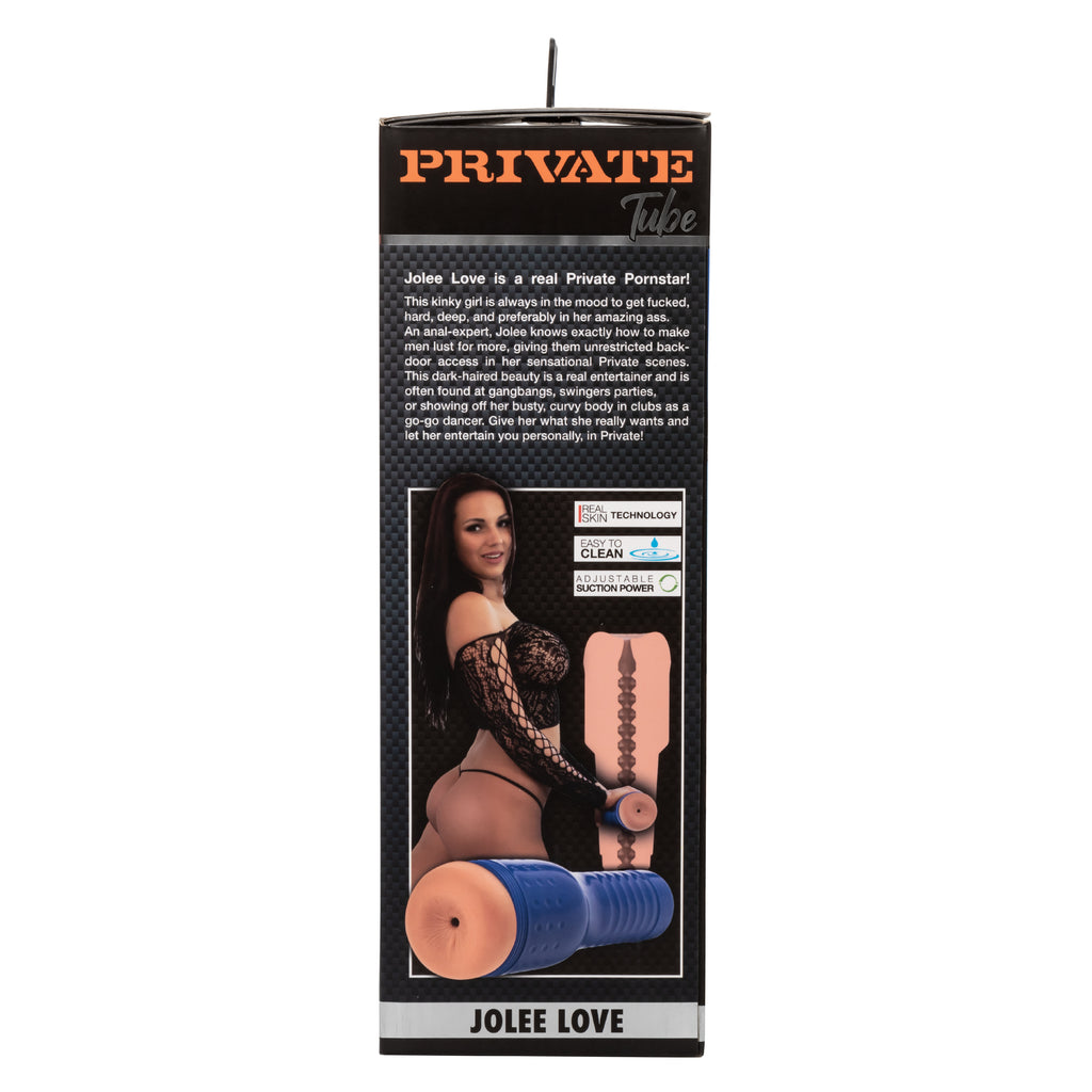 Private is a worldwide leader in premium quality adult entertainment, with sexy content since 1965. From vintage classics made in the 60s to present-day, modern blockbusters. Whatever hot girl you crave, you can watch her in Private and now you can enjoy her in the flesh with your own personal Private tube! Dive deep into your naughtiest fantasies with the anal loving Private Jolee Love. A thrilling textured chamber, real-feel opening and adjustable suction power are sure to fulfill your fantasies with your favorite porn star. Keep the good times rolling when you slip this self contained sleeve into your suitcase or overnight bag for a naughty realistic feeling stroking experience whenever your travels take you. Jolee Love is a real Private Pornstar! This kinky girl is always in the mood to get fucked hard, deep, and preferably in her amazing ass. An anal-expert, Jolee knows exactly how to make men lust for more, giving them unrestricted back-door access in her sensational Private scenes. This dark-haired beauty is a real entertainer and is often found at gangbangs, swingers parties, or showing off her busty, curvy body in clubs as a go-go dancer. Give her what she really wants and let her entertain you personally, in Private! Whether indulging at home or wherever pleasure takes you, the compact and stroker is the teasing travel companion youve always craved. The premium Real Skin TPR is unscented, phthalate free and maintenance free to keep your most sensitive spots, happy and healthy. Tube made of PP Plastic - Sleeve made of TPR Includes: Stimul8 Lubricant & Stimul8 Renewal Powder Real Skin Technology Easy to Clean Adjustable Suction Power