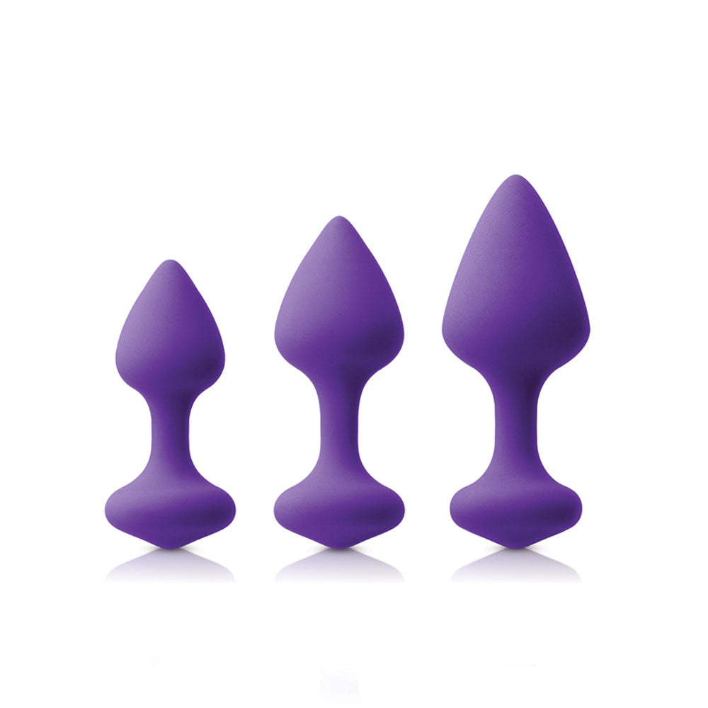 It all starts with a kiss. INYA Triple Kiss Trainer Kit includes an assortment of three firm, silky-smooth silicone plugs, tapered for easy insertion and comfortable fit. With a cute and fun design, available in pink and purple, youll always remember your first Triple Kiss. Suitable with all lubricants.