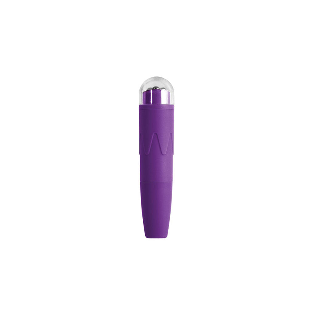 Lotus by Lush. Compact pocket vibrator (4.5in. / 115 mm) with knobs for stimulation. ABS. Velvet touch. Water resistant. 1 AA battery not included. Suitable with all lubricants.