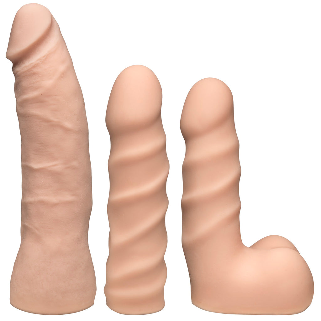 The Vac-U-Lock Dual Density Starter Set provides a fun and innovative introduction to strap-on sex with a complete harness with removable o-rings and plug, three moderately-sized ULTRASKYN attachments and a bottle of Mood water-based lube. These dual density attachments warm to body temperature with use and feature a soft, pliable exterior that gives way to a firm inner core, recreating the feel of a real erect penis. Begin your exploration with the pleasing ridges and plush balls of the 5.5 inch textured cock, or go a bit deeper with the 6 inch spiral dong. For the strongest and most lifelike sensation, choose the 7 inch thin dongs realistic proportions, contours, and vein details. Attachments can be used with the harness, the included Vac-U-Lock suction cup, and any other accessory or harness in the line. The Vac-U-Lock Dual Density Starter Set also includes Doc Johnson Natural Toy Cleaner and ULTRASKYN ULTRASKYN attachments. Every product in the patented Vac-U-Lock system is designed to help you create any strap-on or toy youre in the mood for, and its as simple as popping on the attachment of your choice. Unisex Supreme Harness is Adjustable Up to 69 O-Ring Compatible (Includes 3 Ring Sizes) Three Dual Density ULTRASKYN Attachments 7 Thin Dong, 6 Spiral Dong, and 5.5 Textured Cock Plug with Pad and Snaps Suction Cup Plug 4 fl. oz. (118 mL) Water-Based Lubricant 4 fl. oz. (118 mL) Natural Toy Cleaner 1 oz. Vac-U Powder Phthalate-Free, Talc-Free, Body-Safe Proudly Built in America