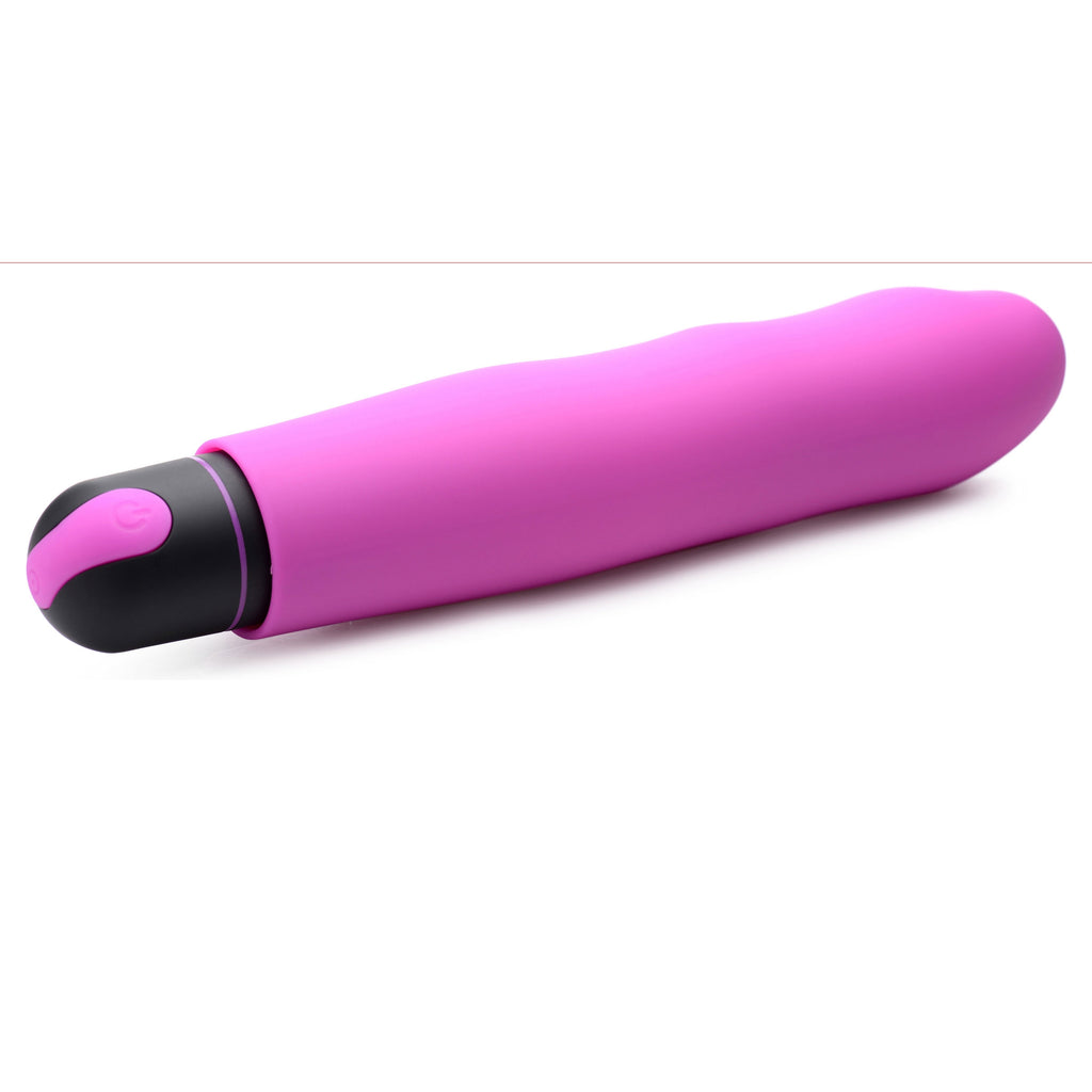XL Bullet and Silicone Wavy Sleeve This extra large vibrating bullet features an extended body - slim and silky smooth with a powerful motor for exciting internal or external pleasure! Featuring a wavy and bumpy silicone sleeve, undulating and lumpy for a satisfying fill as you thrust in and out. The outer silicone sleeve can be removed for a smooth and sultry bullet if you prefer something more discrete. Choose from 3 vibration intensities and enjoy this Bullet with or without its sleeve, depending on your mood for the night. Recharge this meaty bullet when the power runs low with the included USB charging cable. Designed with IPX7 waterproofing for ease of cleaning and shower friendly fun! Compabitle with water based lubricants only. Bullet With Sleeve Measurements: Overall length 9.8 inches, insertable length 8.2 inches, widest insertable diameter 1.8 inches. Bullet Measurements: 8.5 inches in length, 1.4 inches in diameter Materials: Silicone, ABS