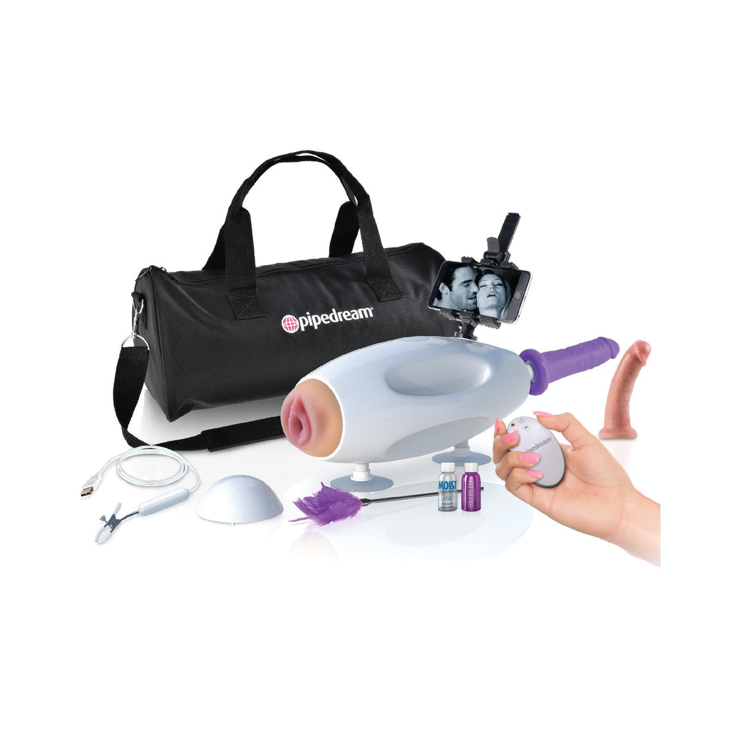 When you're looking for a travel-friendly sex machine that can operate on any electric current in the world, the Fetish Fantasy Series International Portable Sex Machine is the perfect choice for instant satisfaction! Unlike bigger and bulkier electric fuck machines, this portable sex simulator easily fits in your suitcase and features a universal power adapter to safely support multi-standard voltages in nearly every country. With a built-in surge protector, the global converter allows you to enjoy powerful and portable plug-in performance anywhere in the world! Don't let its size fool you-this is the ultimate portable state-of-the-art sex machine built to perform! At a mere 9.5-inches long and weighing only 3 pounds, this piston-powered sex machine features 4 super-strong suction cups, 2 interchangeable phthalate-free dildos, 2 adjustable velcro foot and hand stirrups, a convenient carrying handle, and a powerful USB-powered plug-in vibrator that doubles as the machine's controller. Perfect for internal or external stimulation, the super-strong controller vibe is made from body-safe silicone and features separate controls for the vibe's power and the machine's intensity. From Pipedream.