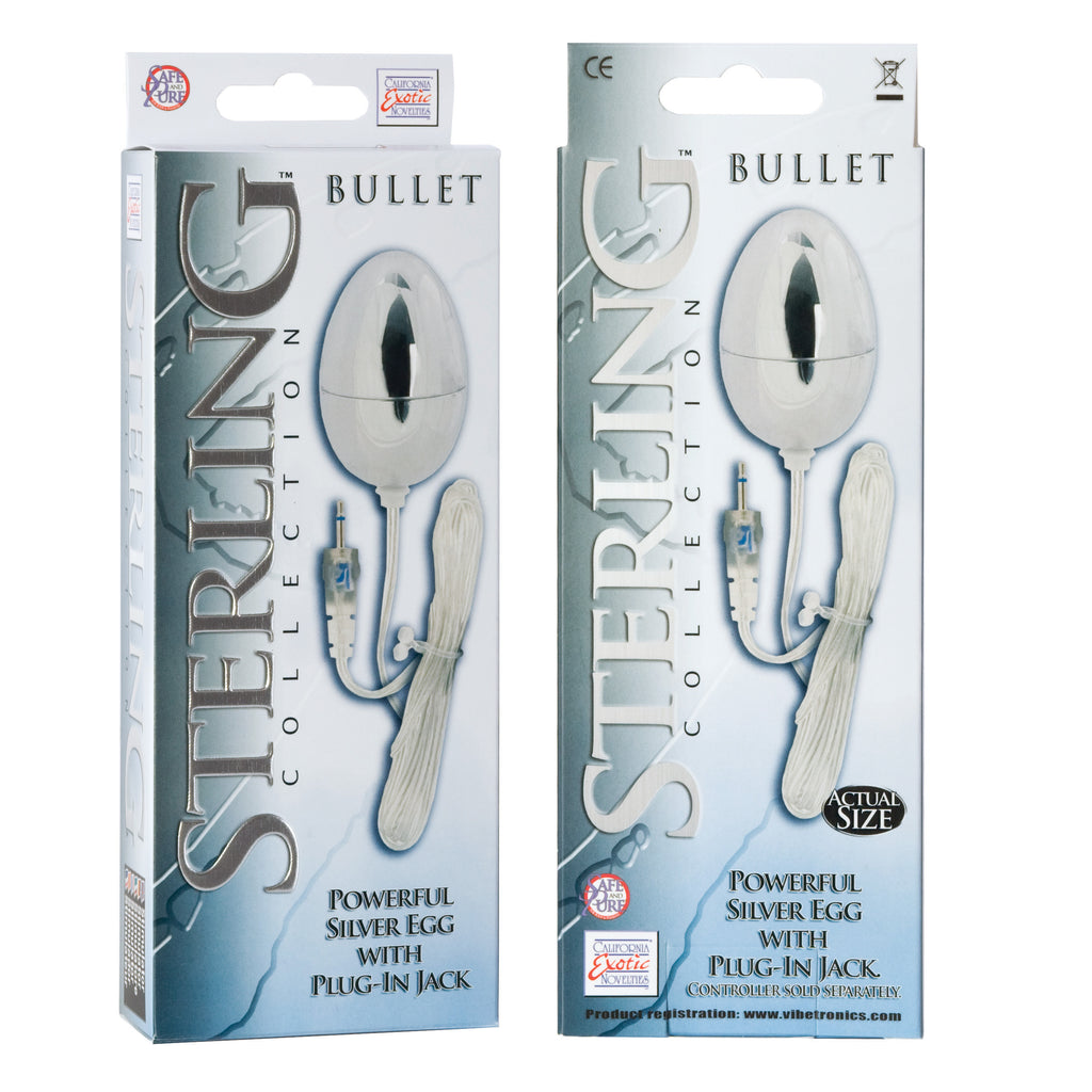 Sophisticated women deserve sophisticated choices to match their style and deliver on their every desire. Creating your dream toy is easy with the Sterling Colection. This collection is the first interchangeable collection of controllers, plug-in jacks, and bullets that are available in individual packaging for mix-and-match fun or in pre-designed sets for carefully curated, optimum pleasure. The Sterling Collection's Silver Egg is a powerful, sleek, and erotic metallic egg that vibrates, pulses, and pleasures with the help of the controller of your choice. Imagine picking the eact array of vibrations you crave (be it one, two, or seven), finding the add-ons that give you shivers of anticipation, and plugging in this smooth silver egg to kiss and caress all your sweet spots in a personally tailored orgasm experience. If that's not luxury, we don't know what is! This collection features dozens of unique items, including controllers, stimulators, and textured bullet sleeves. Pick a controller with as many speeds as you desire to power the sensual stimulating egg. Once you pick your controller, explore the wide array of sensually ribbed sleeves that offer a thrillin variety of sensations and textures to tickle, tease, and please you to incredible orgasms. Materials: ABS Plastic with metallic plating Note: this product is the bullet only. Must purchase a controller separately. Compatible Controllers: SE1099203 Sterling Collection 2 Speed Controller SE1099213 Sterling Collection 7-Function Controller SE1099223 Sterling Collection 7-Function Dual Controller