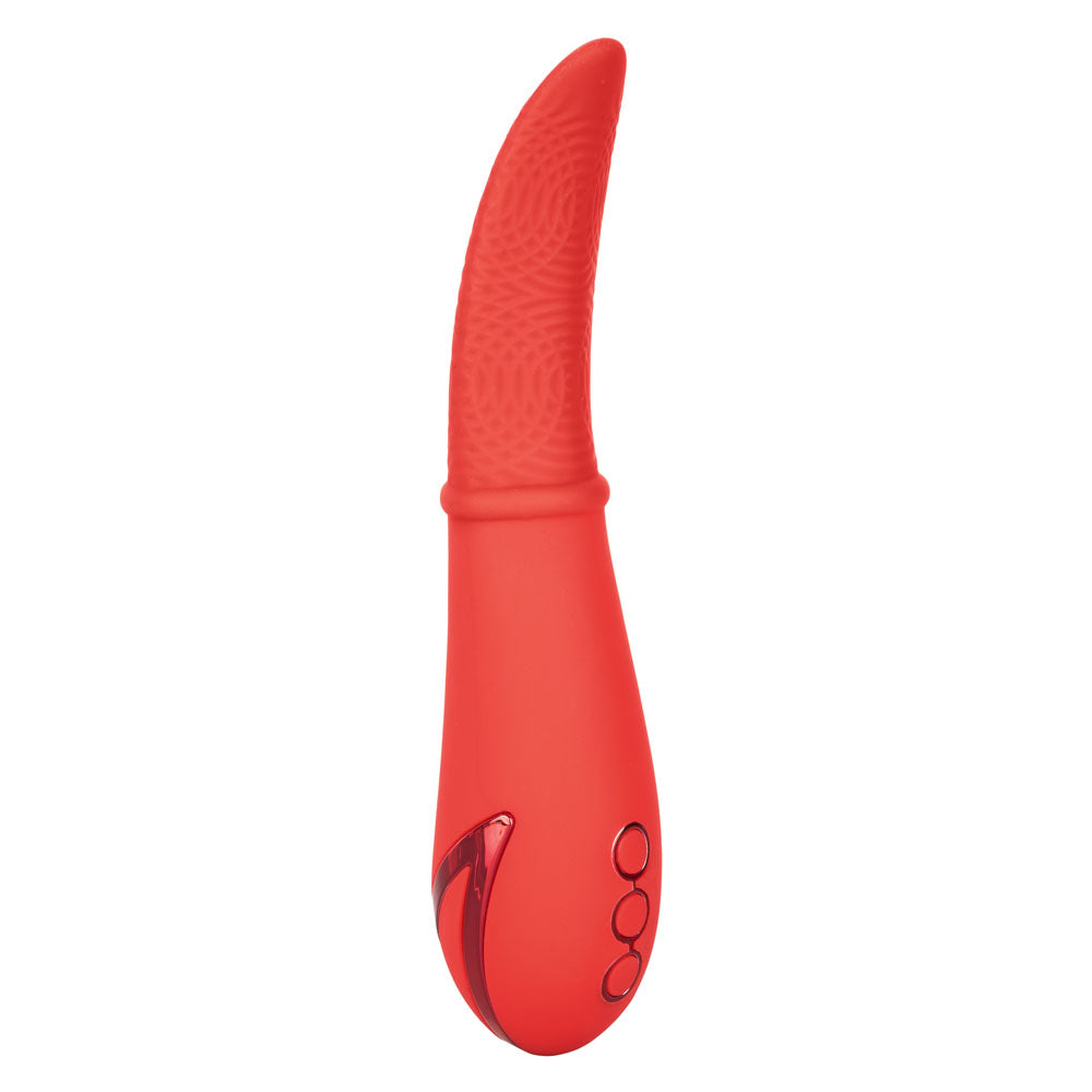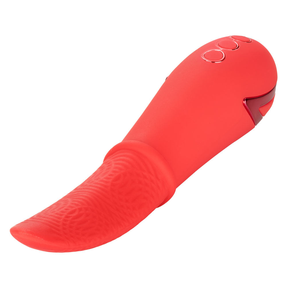 Powerful massager with flickering action 3 speeds of sensational flickering action plus sensually textured tongue 10 functions of independent vibration, pulsation and escalation Body safe Silicone State-of-the-art memory chip resumes on last function used Easy push-button control with security travel lock feature USB rechargeable charging cord included Complete charge in 2.5 hours Runs 45 minutes on high speed and 2.5 hours on low speed