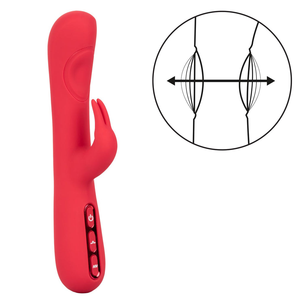 With 2 times the powerful thumping action, the thrilling Throb Pulse is made to get your pulse racing. This powerful rabbit vibrator has 2 uniquely placed thumping pads on both sides of the shaft to deliver 3 speeds of deep, rumbling thumping. A flickering rabbit teaser is made for knee-shaking stimulation as it shimmies to the rhythm of 7 intense functions of vibration. Embrace fully personalized pleasure with the independently controlled 3 speeds of thrilling thumping action and 7 functions of vibration. The pulsating curved tip delivers 3 thrilling speeds of thumping sensation that redefine pleasure. The easy-touch 3-button control lets you cycle through the knee-shaking settings. The self-sealing charging port and silicone body let you get steamy with this waterproof vibe. The hypoallergenic premium silicone is body safe, unscented and phthalate free to keep you most sensitive spots, happy and healthy. Independent Vibrating and Thumping Action for Unlimited Possibilities 2x Thumping Action for Double the Pleasure Easy Push-Button Controls with Instant On/Off 3 Speeds of Multi-Directional Thumping Action 7 Functions of Intense Vibration Security Travel-Lock Feature; Hold for 3 Seconds for On/Off One Year Warranty Body Safe, Unscented, Phthalate Free May Be Used In or Out of Water USB Rechargeable, cable included Massager Will Run For: 1 Hour on High Speed 80 Minutes on Low Speed Complete Charge in 2 Hours Shaft Measurements: 4.25" x 1.25" ( 10.75cm x 3.25cm) Stimulator Measurements: 2: x 1" ( 5cm x 3.25cm)