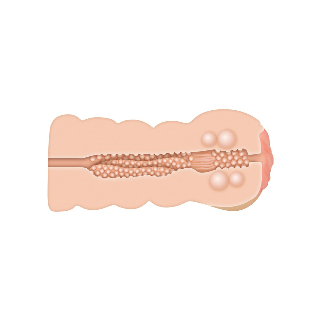 Make your orgasms mind-blowing with this intense massaging stroker. Slide in past soft, realistic vaginal lips to feel its dense inner massage beads give your shaft a tight squeeze. Sink deeper to feel nubs and ridges rub your wood the right way with every stroke. Soft, stretchy TPE skin feels just like the real thing for the perfect fantasy feel. Open-ended for easy cleaning. 5.5 inches total length, 3.04 inches wide.