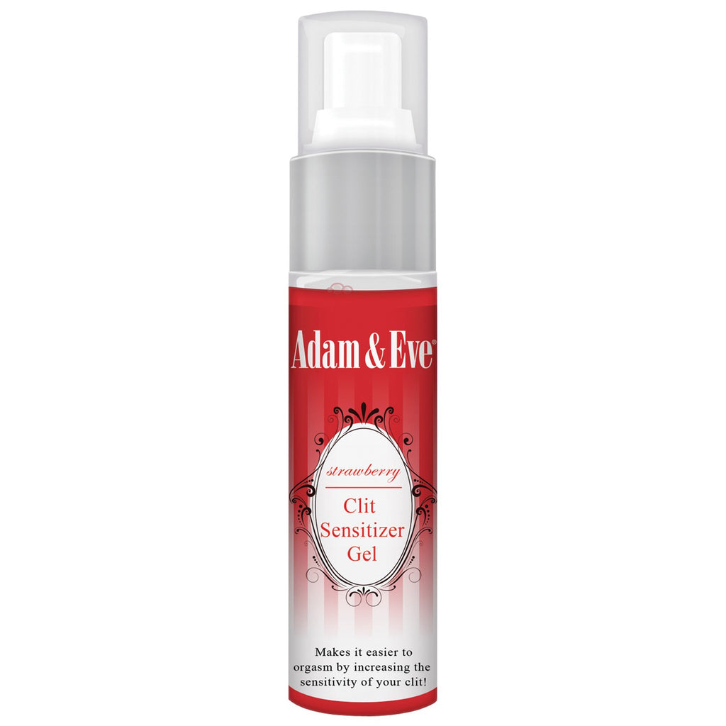 Adam & Eve Strawberry Clit Sensitizer Gel. Heighten her passion -- and her pleasure -- with just a dab of this fruity gel! Massage Strawberry Clit Sensitizer Gel directly onto clitoris and shiver as its tingling warmth takes you to one bed-quaking orgasm after another! Made with kissable, lickable, and so delicious strawberry flavor! Easy to use 1 ounce pump bottle. Strawberry Clit Sensitizer Gel. Formulated to increase clit sensitivity. Increased sensitivity can lead to more intense orgasms. Strawberry flavor is perfect for oral sex. Pump bottle. Good for dozens of dime-sized applications. Takes 10 to 15 minutes to absorb completely. Made in USA.