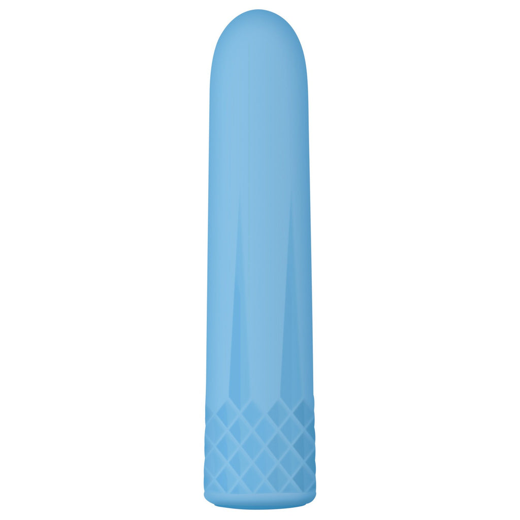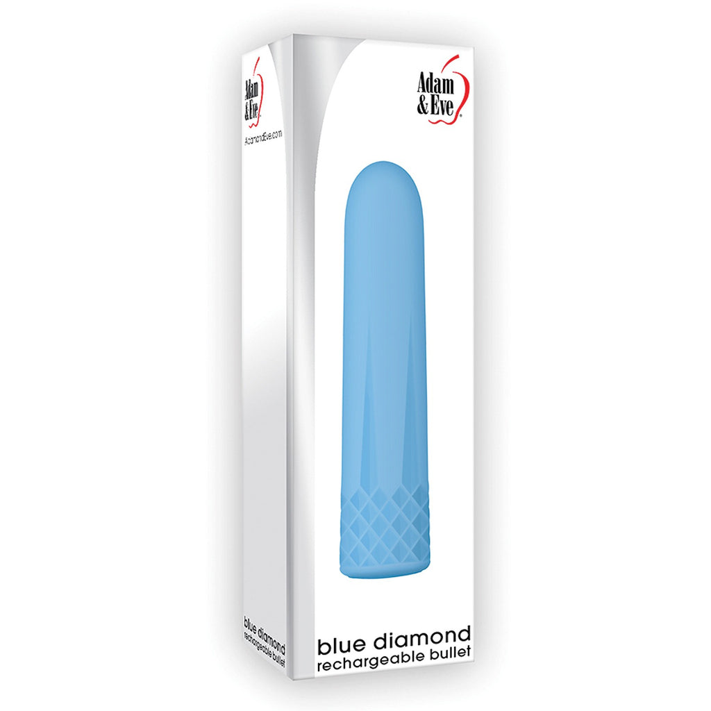 Put pulse racing rechargeable power at your fingertips. This powerful yet discreet bullet vibe buzzes your sweet spots with 10 intense functions. Feel speeds, pulsation, and patterns as its velvety smooth surface glides over skin. A diamond textured base gives you no slip control. Ridges add extra stimulation during those deep slides. Try this waterproof and completely submersible vibe out in tub or shower for the ultimate in wet and wild play. Clean up with Adam and Eve toy cleaner and a warm water rinse. Features rechargeable powerful and discreet bullet vibrator. 10 unique vibrating speeds and functions. Ridges along shaft add stimulation. Easy grip diamond texture at base. Handy 1 button control. Made from velvety smooth ABS plastic with polyurethane PU cote. 3.62 inches long by .82 inch wide. Phthalate free and latex free. Waterproof and submersible. Rechargeable, USB cable included. 5 year warranty.
