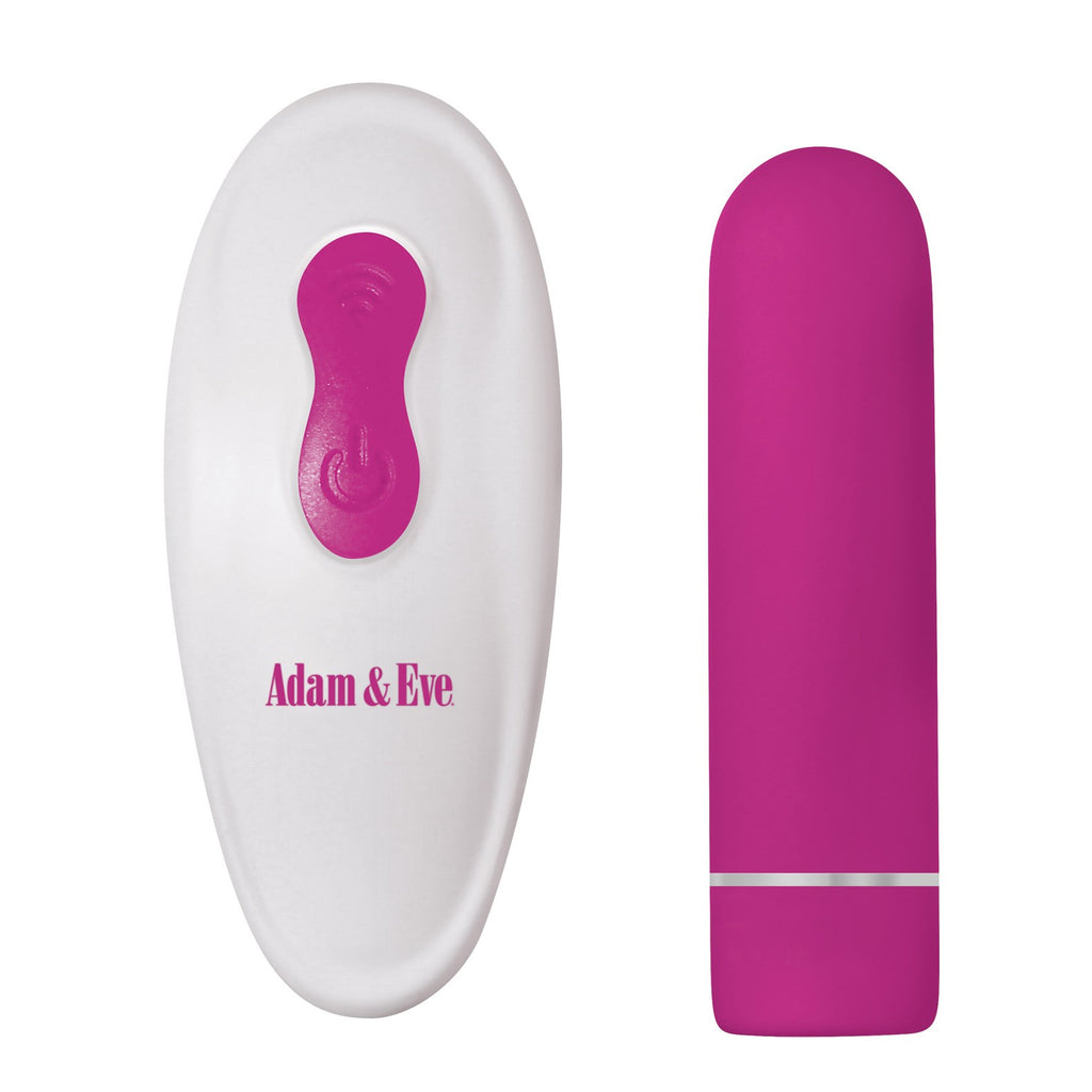 From Adam and Eve a powerful remote control bullet. 9 vibration speeds and functions. Bullet can work independently of controller. Ergonomic remote fits hand perfectly. 50 foot range. Bullet is waterproof and submersible. Material: ABS Dimensions: Bullet - 2.74 inches long x .75 inch wide USB rechargeable Five Year Warranty.