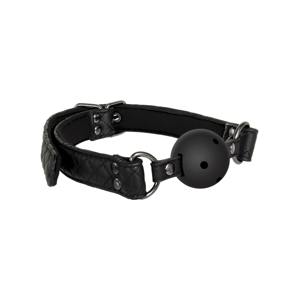 Muffle those moans, groans, and other cries of ecstasy with Eve's Fetish Dreams Ball Gag. This gorgeous padded gag buckles comfortably around your head. Put the firm gag between your lips and you're ready for bondage bliss. And though it keeps you from making noise and speaking, holes in the gag itself let you breathe freely - for maximum worry-free kinky fun. Holes in the gag make it easy to breathe, no matter how wild and crazy your games get. Soft padded diamond-stitched vegan leather straps keep you comfortable and looking so good. Straps: 12 inches long x 1.05 inches wide.