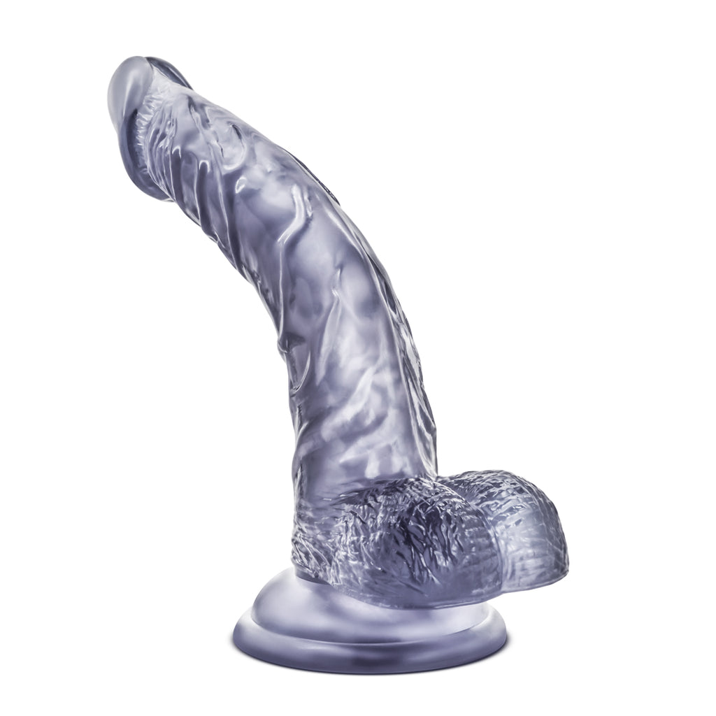 Stimulate your g-spot with this large and perfectly curved realistic dildo. The Sweet N Hard 7 is large and in charge with 8.5 inches of length and 2 1/4 inches of girth. The strong suction cup makes this dildo perfect to be mounted anywhere for your play! This base also makes this toy harness compatible for both lesbian play or pegging. With four hard candy colors available (pink, purple, blue, and clear), this toy is a fun and playful favorite toy cleaner, before and after every use. Pat dry with a soft towel before storing.