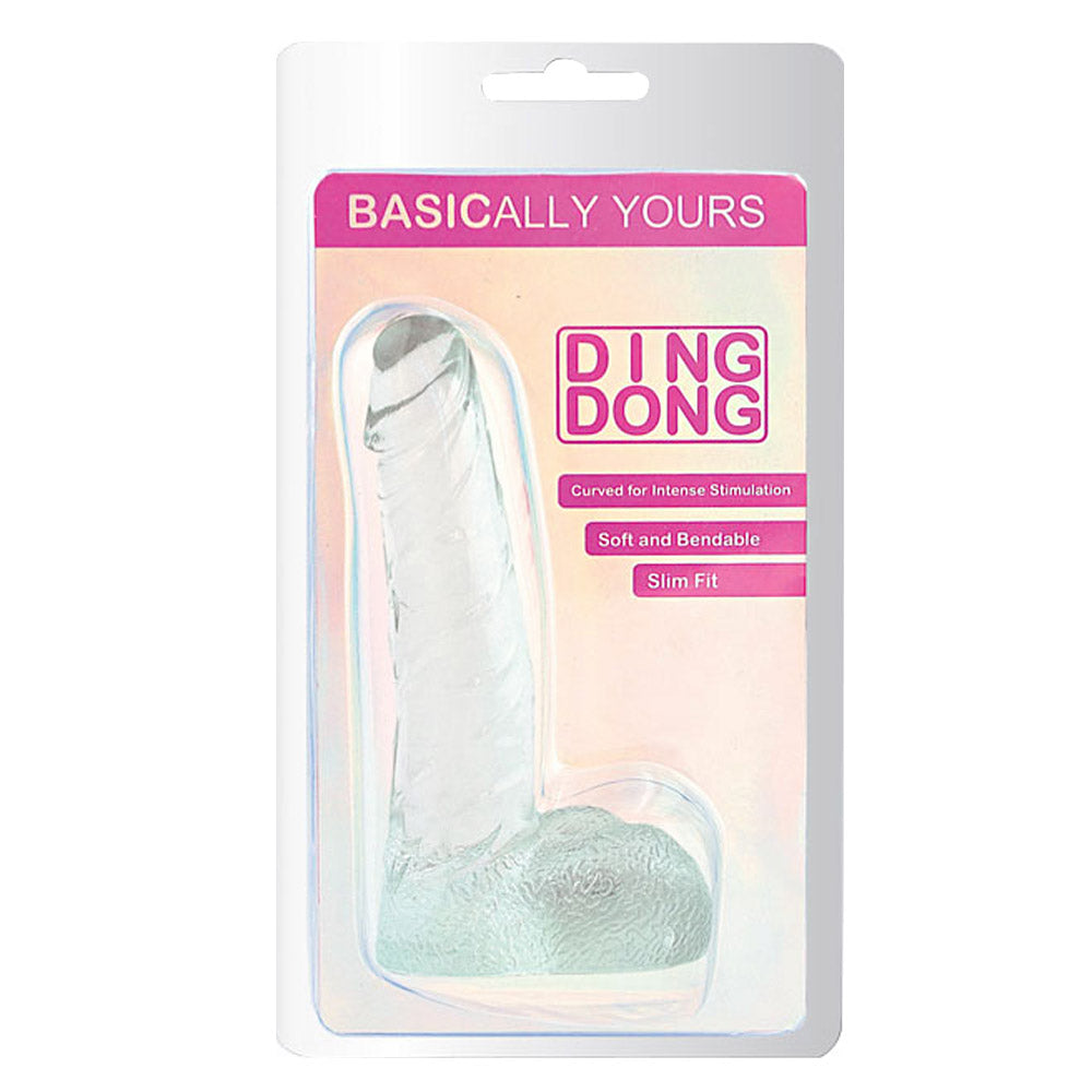 Basically Yours Ding Pink Dong from Blush Novelties. Sized and shaped perfectly for beginners and those who are petite in size. It's clear shaft looks appealing and clean. The realistic shape quickly brings on orgasms to the user. Ding Dong is perfectly sized for beginners. Shaped for G-spot stimulation. Great for both vaginal and anal. Realistic PVC dong can safely be inserted 5 inches. Made using phthalate free, non-toxic materials PVC. Recommended lubricants are water base. Additional Specifications product weighs 5.4 ounces. Ding Dong non-vibrating cock and balls measures 8.75 inches long by 1.75 inches wide. Product Package Dimension: 8.75 inches Height by 5 inches Width by 1.75 inches Depth. Product Weight inside package 6.8 ounces. Always clean before and after use. White paper insert clam shell package blue background 2013, 2014 package features brightly colored paper insert. Package may vary. Color may vary. Updated March 14, 2014.