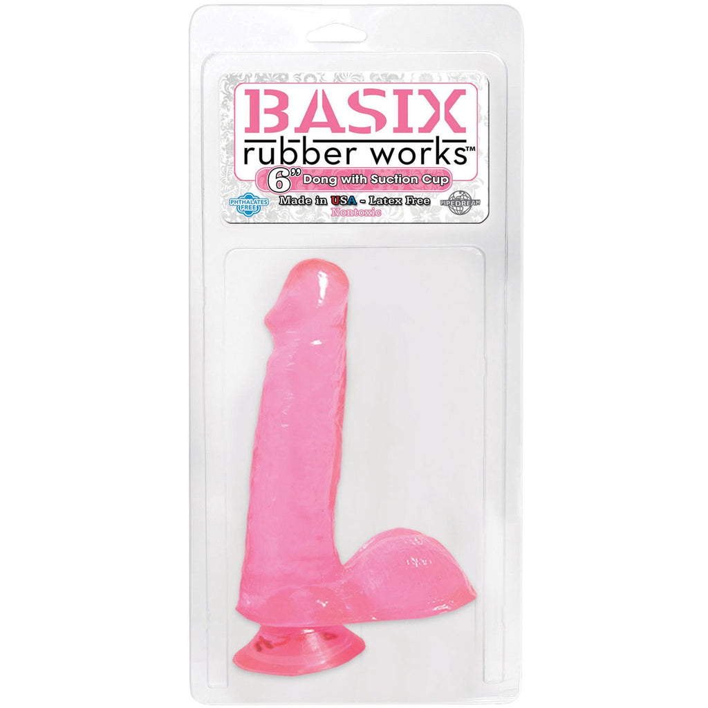 The Basix Rubber Works 6" Suction Cup Dong from Pipedream puts a new twist on a classic product to bring you the best possible rubber made in the USA. Pipedream's American-made rubber is 100% phthalates and latex-free, environmentally safe and hypoallergenic. Item Length:6"; Item Width: 4"; Item Diameter: Approx 1.5". Pink.