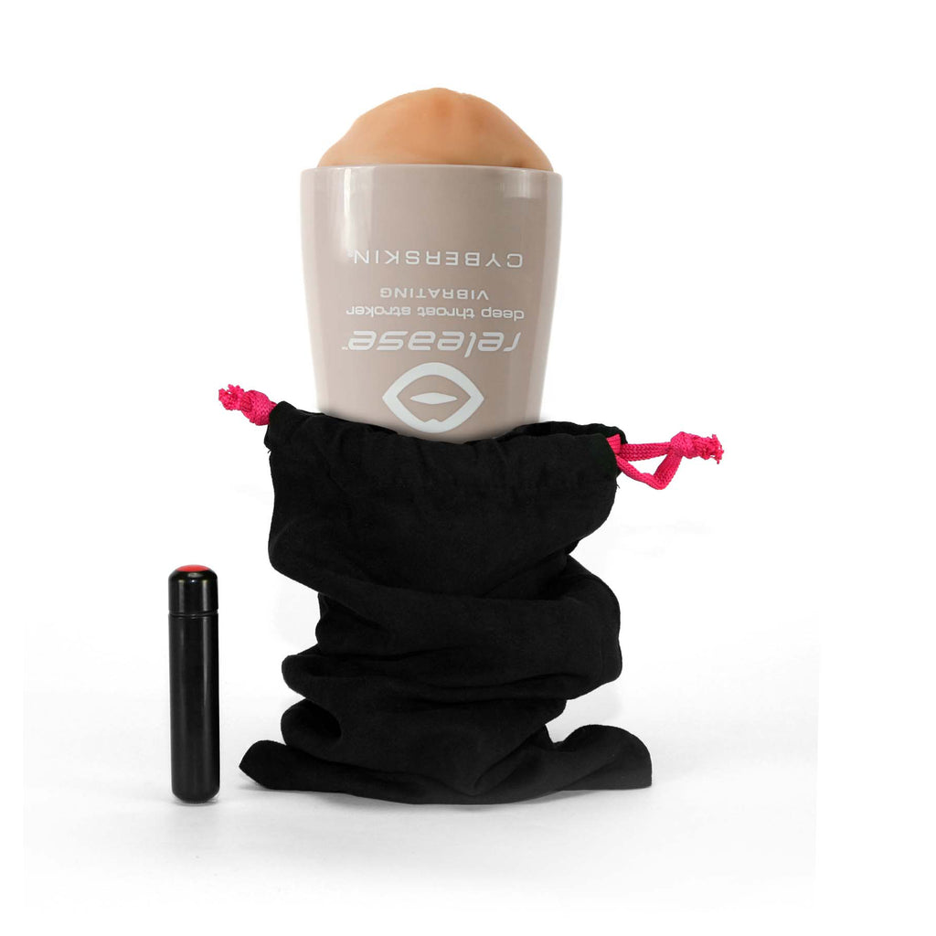 I want to wrap my soft lips around your throbbing cock. Turn on my 6x vibrating bullet and I'll pulse and vibrate until you explode. Slide through my supple lips and feel my ribbed, deep throat engulf you. Remove me from my case for easy cleaning. Soft CyberSkin material is phthalate free. Plastic D-ring lets you hang me anywhere. Waterproof for fun in the shower. Uses 1-AAA battery (not included)
