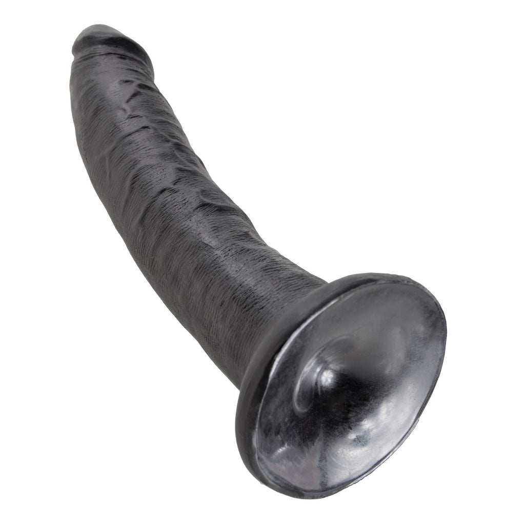 Do you want your first dildo to look and feel just like the rock-hard stud you've always fantasized about? Stop dreaming and get down with the King! Every vein, every shaft, and every head is carefully handcrafted with exquisite detail to give you the most realistic experience ever imagined. The powerful suction cup base sticks to nearly any flat surface and makes every dildo harness compatible. Made in Pipedream's state-of-the-art rubber manufacturing facility, every King Cock is phthalate-free, latex-free, body-safe, and hypoallergenic. Best of all, King Cock is proudly made in the USA so you can enjoy every masterpiece with confidence. Length: 7" (17.8 cm) Width: 1.6" (4.1 cm)