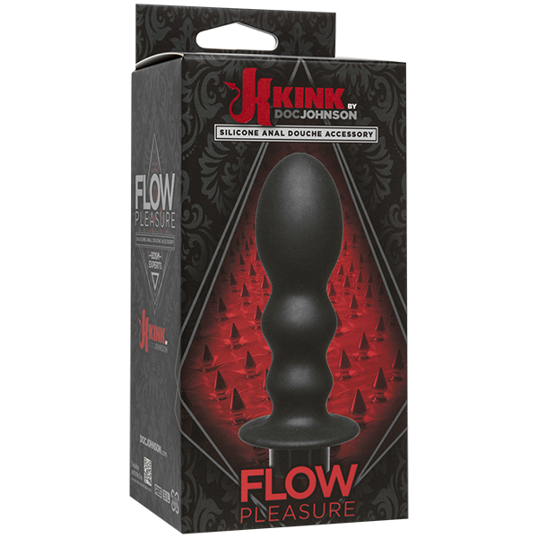Experiment with slippery, messy, ass-filling fun with the Flow Pleasure silicone anal douche accessory, only available in the Kink by Doc Johnson collection. Flow Pleasure is crafted in the shape of a ribbed plug with a hollow center intended for liquid play; just attach it to the anal douche bulb or shower hose adapter (sold separately) to completely fill that hole with lube, water, or other liquids of your choosing. Total Length: 4". Insertable Length: 3.5". Width: 1.5".