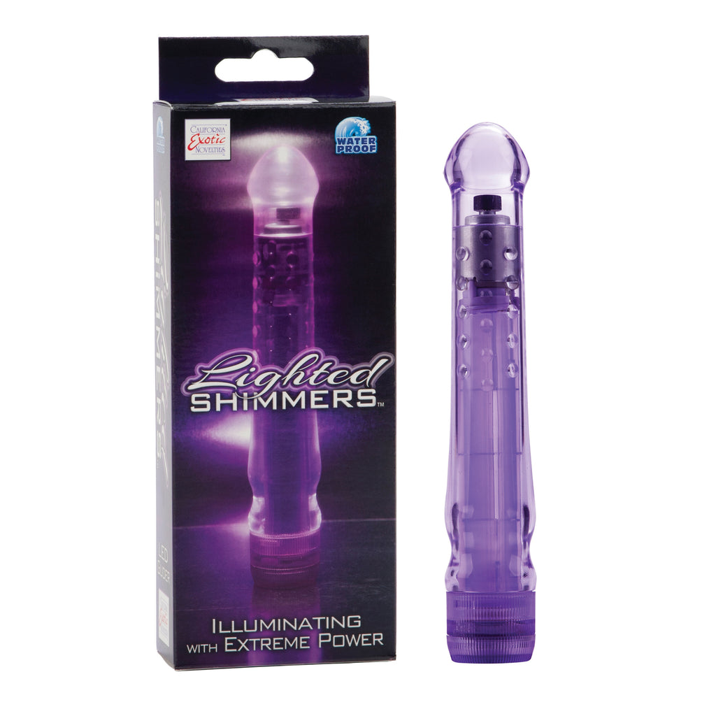 Elegant smooth and sleek with sensuous pleasure bumps this multi-speed powerful vibrator lights up with a brilliant LED. Waterproof for fun in and out the water. Turn off the lights and watch me glow.