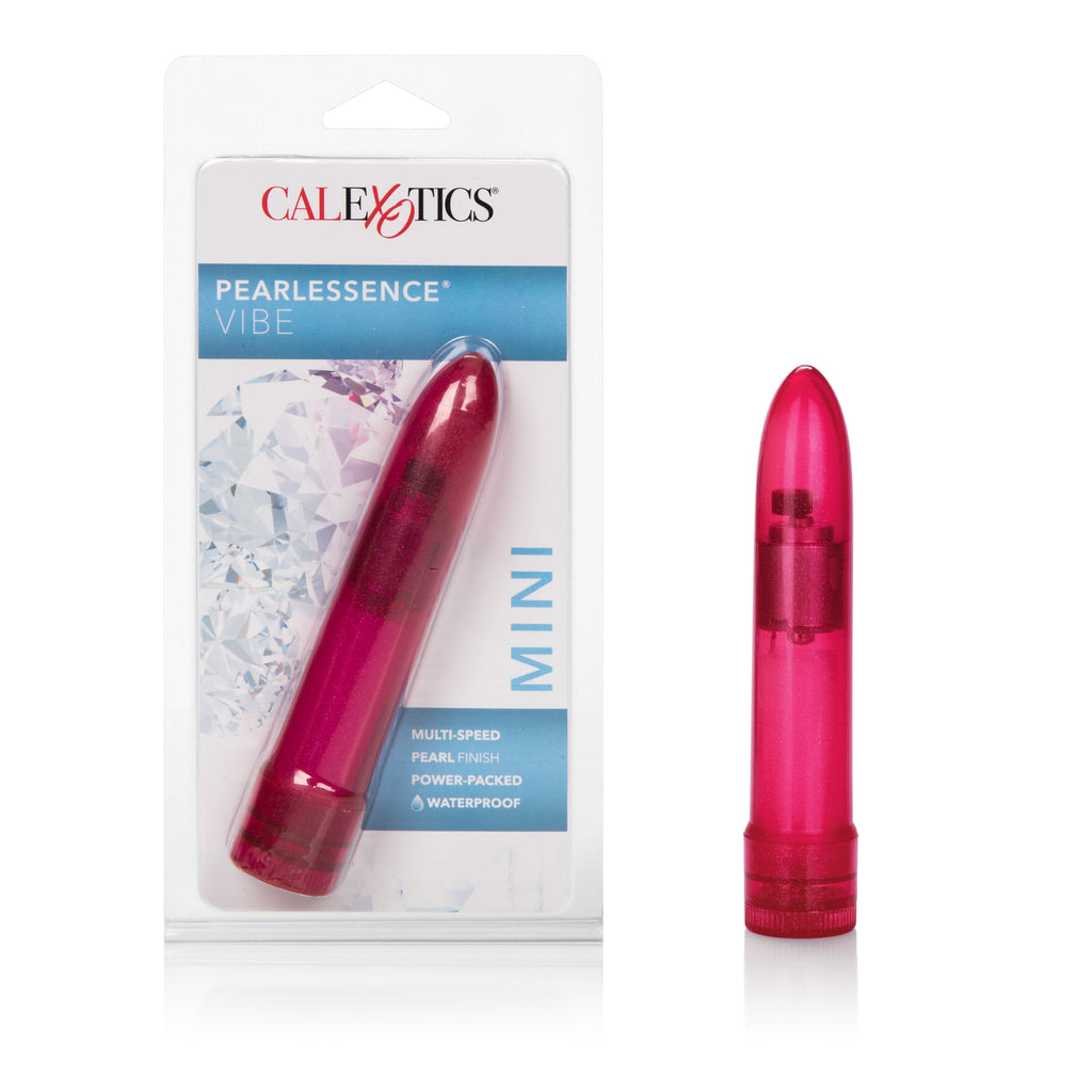 Bring some opulence to the bedroom with the powerful Mini Pearlessence Vibe by CalExotics! With this massager you can streamline your sex life - the traditional shape will keep you cumming back for more, no matter what! Molded from a sleek, easy to clean ABS material, which you'll find not only sends shuddering orgasms through your body during clitoral stimulation but also if inserted. Your body isn't going to know what hit it! This beginner sex toy is the perfect little vibrator for carrying discreetly with you. At 4.5 inches long and 1-inch-wide, you can carry it around with you wherever you go, in a purse or pocket, and nobody will ever know that you're orgasm when you can have it whever you desire? The Mini Pearlessence Vibe is one of CalExotic's most powerful, sleek, and smooth traditional vibrators. It comes with a multi-speed function so you can tease your body into submission before you tip yourself over the edge. Its tapered tip allows you to pinpoint your pleasure for even more explosive orgasms. A water-based lubricant is recommended for instant pleasure.
