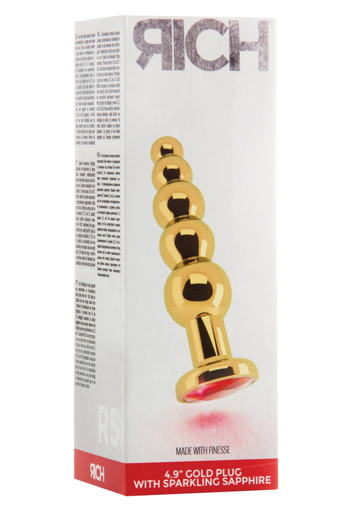 This luxury buttplug will make sure you will experience anal play the way it's meant to be played! This specific plug has a sleek design with 5 stimulation beads in various diameters. The first one measures 0.7 inch (1,8 cm), while the following beads are getting slightly bigger every time up to the last bead which has a diameter of 1.3 inch (3,3 cm)! These beads make sure you will feel every movement of the plug hitting all the right places! The plug has an insertable length of 4.9 inch (12,5 cm) and a well designed end point so it can't slip in further than it's meant to go. On the bottom of the plug is a beautiful diamond design making sure your partner will love the view!