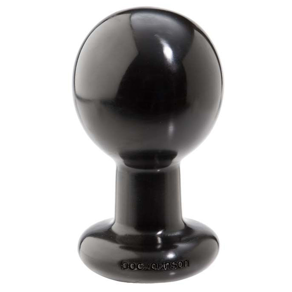 A more well-rounded butt plug, this 4.75" Round Plug, from Doc Johnson, has a uniform spherical head that stretches you out effectively, fills you up fully, and hits all of your sweet spots. The large size is considerable yet manageable-- and perfect for advanced anal players -- while the body is tapered with a wide safety base. Made from our antibacterial Sil-A-Gel formula and surrounded by slick PVC, this plug is firm yet flexible. Proudly made in America.