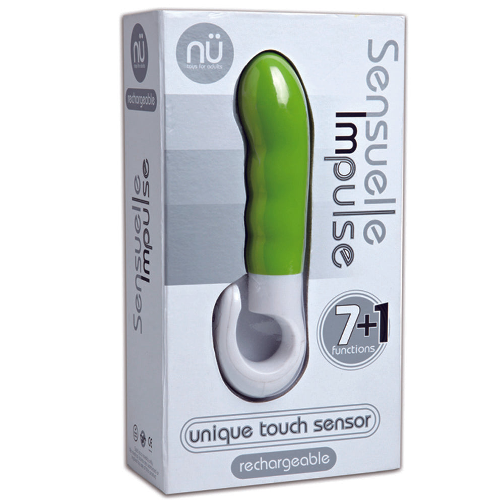 The NU generation in personal stimulation. NU: Naked Sensuelle: Sensual. Discover your deepest sensual desires with NU Sensuelle Erotic toys, designed to meet your every need using state of the art technology. Each toy is special, with unique features to arouse your curiosity and enhance your sexual experience. Ultra smooth, silky touch silicone that feels amazingly sensual against the skin, designed to heighten your senses. Easy to recharge in a compact docking station, so that your NU Sensuelle toy is always ready at your fingertips. The range is fully rechargeable and comes with both a plug and an USB cord. The NU Sensuelle rechargeable range also comes with a discreet dust bag to protect your new sex toy. NU Sensuelle, for whenever you are in the mood for an amazing experience. What are you in the mood for? If you have the urge to try something new, the Sensuelle Impulse Slimline Vibe Green will exceed your expectations. It has a deceptively simple, sleek design starting with the subtle grooves and continues on to the special hook handle. Do not be fooled, as the Sensuelle Impulse has special hidden features aimed to unveil your sensuality. It has a deeply intense motor, with multi function modes, designed to create powerful sensations easily with the touch of a finger. In addition to the 7 vibration functions, the Sensuelle Impulse has a unique touch sensor mode. Upon contact with your body, the touch sensor vibrations will automatically start. But it does not end there. Each groove on the Sensuelle Impulse represents a different sensor region with varying intensities. As you glide along from the tip to the end of the Sensuelle Impulse, the vibrations will increase in intensity the further you move along the shaft. You can switch between the 7 Vibration Functions and touch Sensor Mode at the touch of a button. The special hook handle allows the Sensuelle Impulse to be enjoyed externally or internally, and either as a vaginal or anal toy.