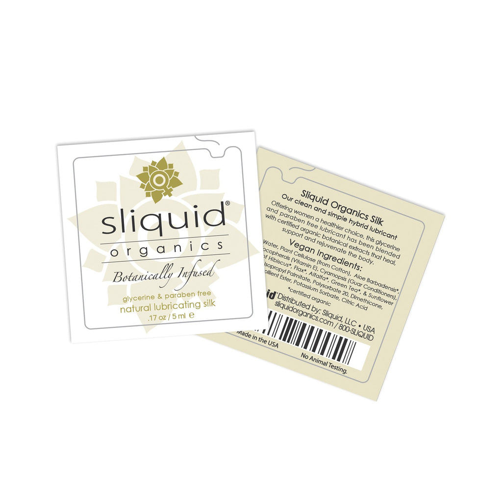 Orgasmically organic! Sliquid Organics Silk is a water and silicone-based hybrid personal lubricant botanically infused with natural ingredients to create a natural silky and creamy texture. It is ideal to use on delicate body tissue, and for women with sensitivities. Vegan. All Sliquid products are Glycerine Free, Paraben Free, Hypoallergenic, and proudly Made in the USA.