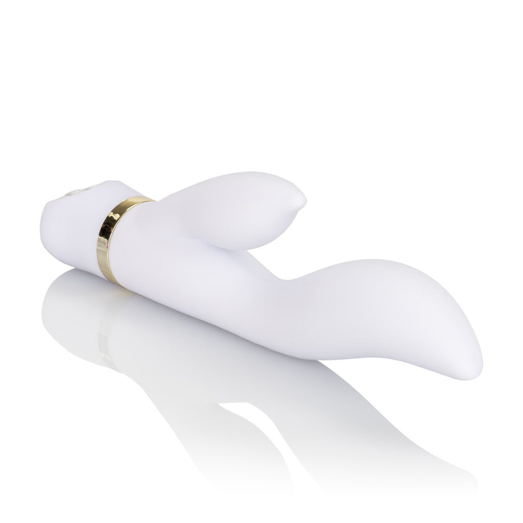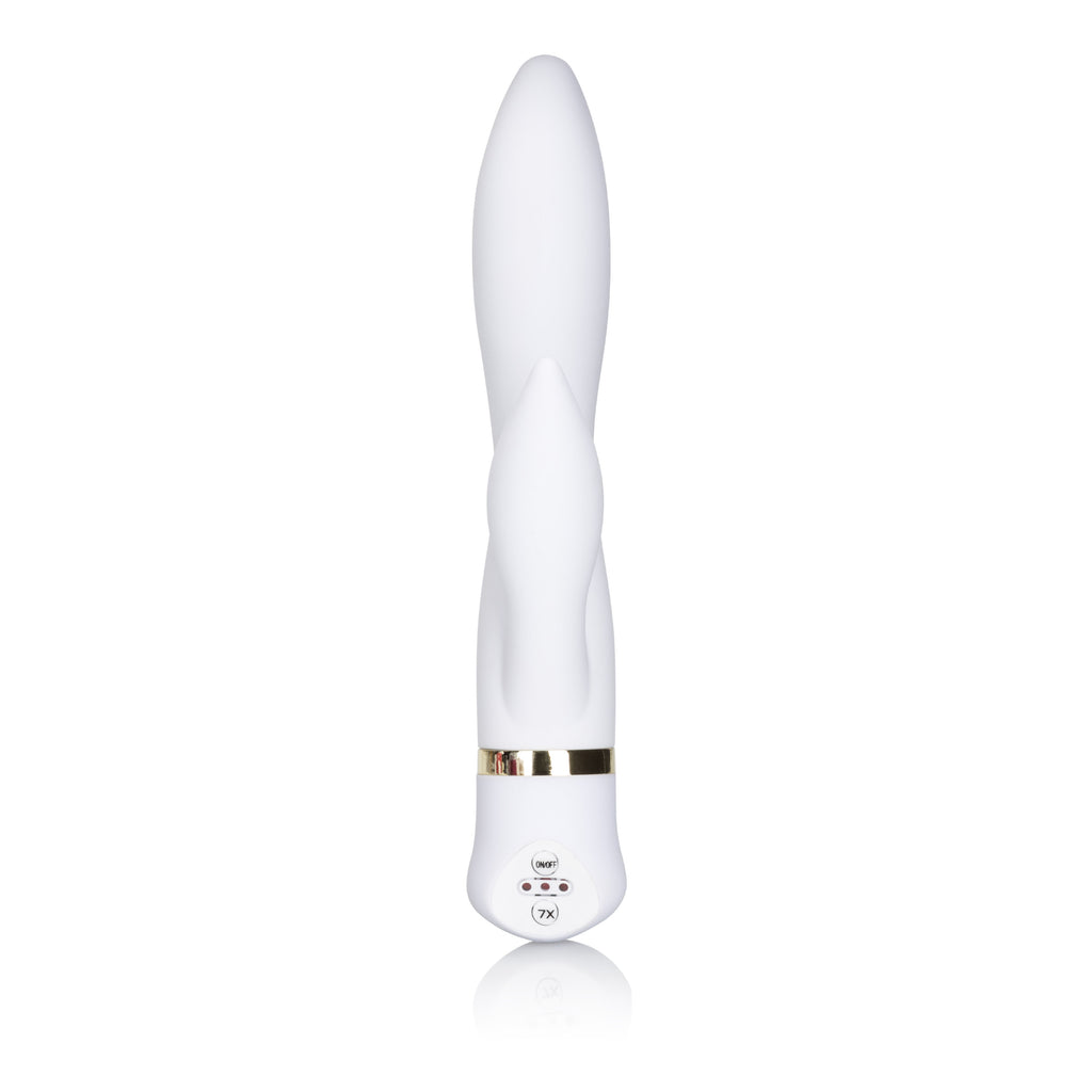 Petite and compact dual stimulator with intense power. Dual motors with 7 functions of vibration, pulsation and escalation. Sensually curved for comfort and reach. Includes an easy push button control with LED light and auto on/off. MATERIALS: Silicone (massager) ABS with PU Cote (cap) ABS with Metallic Plating (dcor) - 4.5 x 1/11.5 cm x 2.5 cm (wave shaft) - 4.5 x 1.25/11.5 cm x 3.25 cm (bunny shaft) - 2 x 1/5 cm x 2.5 cm (stimulator) - 2 AAA Batteries Required (Not Included)