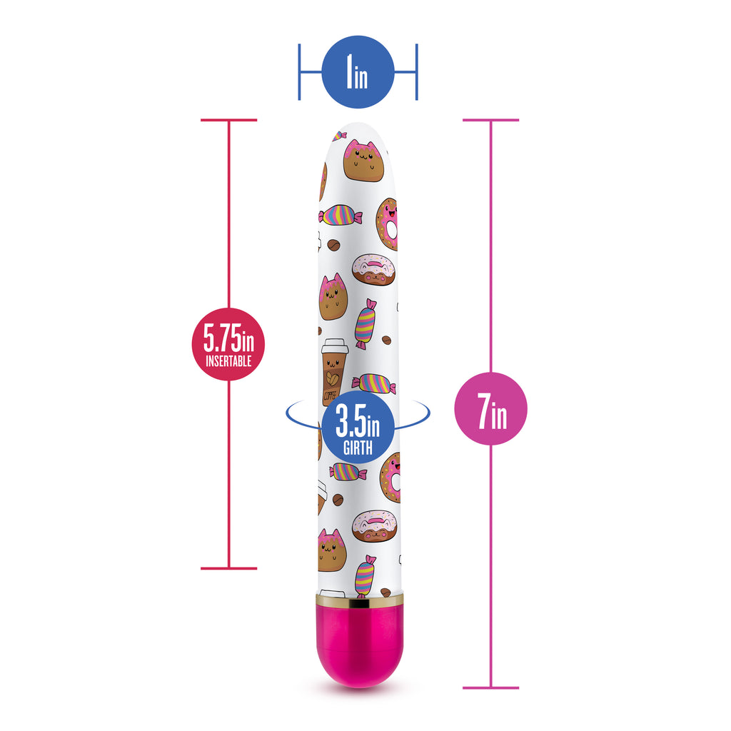Who knew pleasure could be this cute? The Collection vibe is a perfect gift for yourself or your lover. This limited-edition vibe will make you smile with joy with every use. The classic slim design is quiet, discreet, multispeed vibrations, and a smooth casing will deliver lots of sensation. It's pleasure and a treat wrapped up in a sweet package! Features & Benefits: Powerful, Multispeed Vibrations Splashproof Whisper Quiet Lab Certified Body-Safe and Phthalate Free 5 Inches Insertable Length