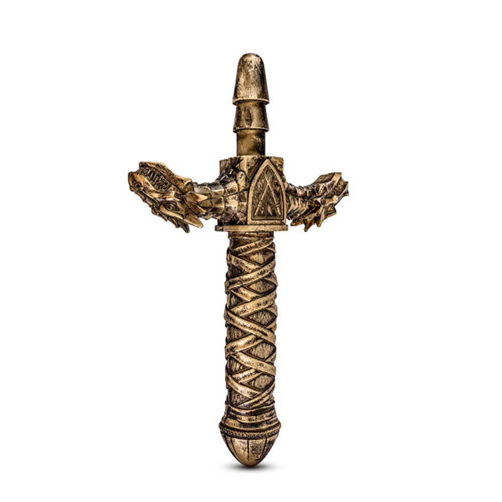 Let your fantasies come to life with The Realm Drago Lock On Sword Handle! This stunning bronze handle fits into your choice of Lock On dildos, to make your playtime more adventurous than ever! The exquisite detailing is fun to look at and easy to grip. Perfect for sexy exploration either alone or with a partner, Drago is body safe and made to last. We recommend using waterbased lube or cornstarch on your Lock On attachment plug to make attaching and removing your toy easier. This polyurethane handle contains no fragrances, phthalates, paraffins, or latex.