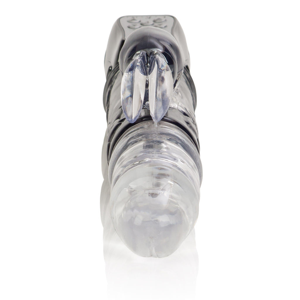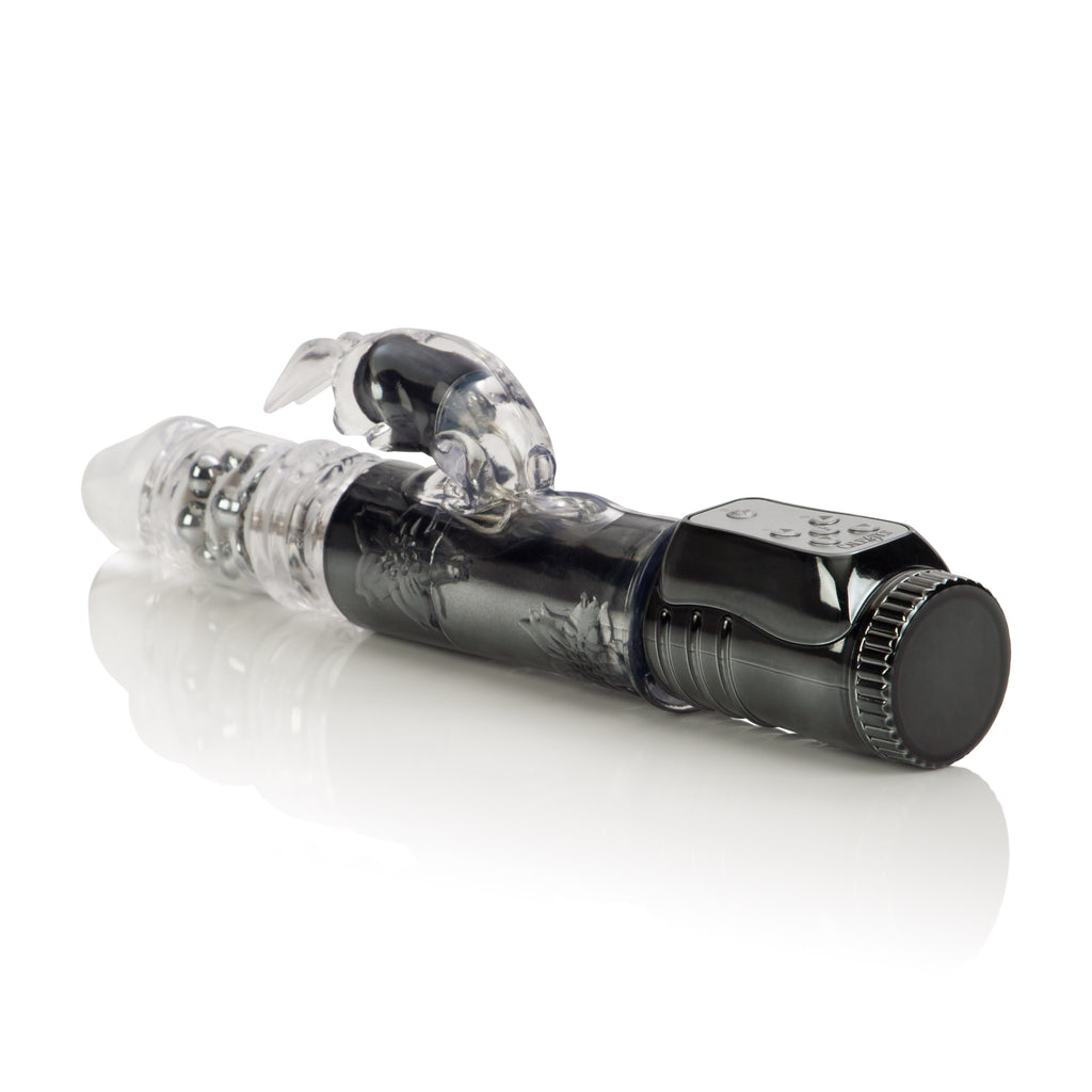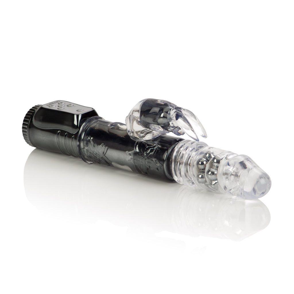 Thrust into a toy that's made to satisfy your every desire with the Thrusting Orgasm Jack Rabbit. This elaborate toy has functions to realize your every craving with incredible textures, speeds, rotations, and plenty of ways to play. This bunny featues dual motors - one in the shaft and one in the bunny teaser - to tickle your clit and tantalize your g-spot all at once. The Thrusting Orgasm Jack Rabbit has eight independent speeds of vibration and thrusting action to hit all the right spots in exactly the way that sends you shooting to earth shattering orgasms. Features & Benefits: Multiple rows of non-jamming pleasure beads. An instant on/off button means you can turn on with ease.. and turn off when you're fully satiated. An LED indicator light shows you the way to pure pleasure. The soft glow will lead you to the peak of satiating pleasure. For the ultimate in gratification, independent controls all you to choose from any of the 8 speeds of vibration and 8 speeds of thrusting action. Shaft measures 5.25" x 1.5" (13.25 cm x 2.5 cm) Bunny measures 2.5" x 1" (6.25 cm x 2.5 cm) Three AA batteries are required to let this bunny transport you to a place of incredible ecstasy. Not included.