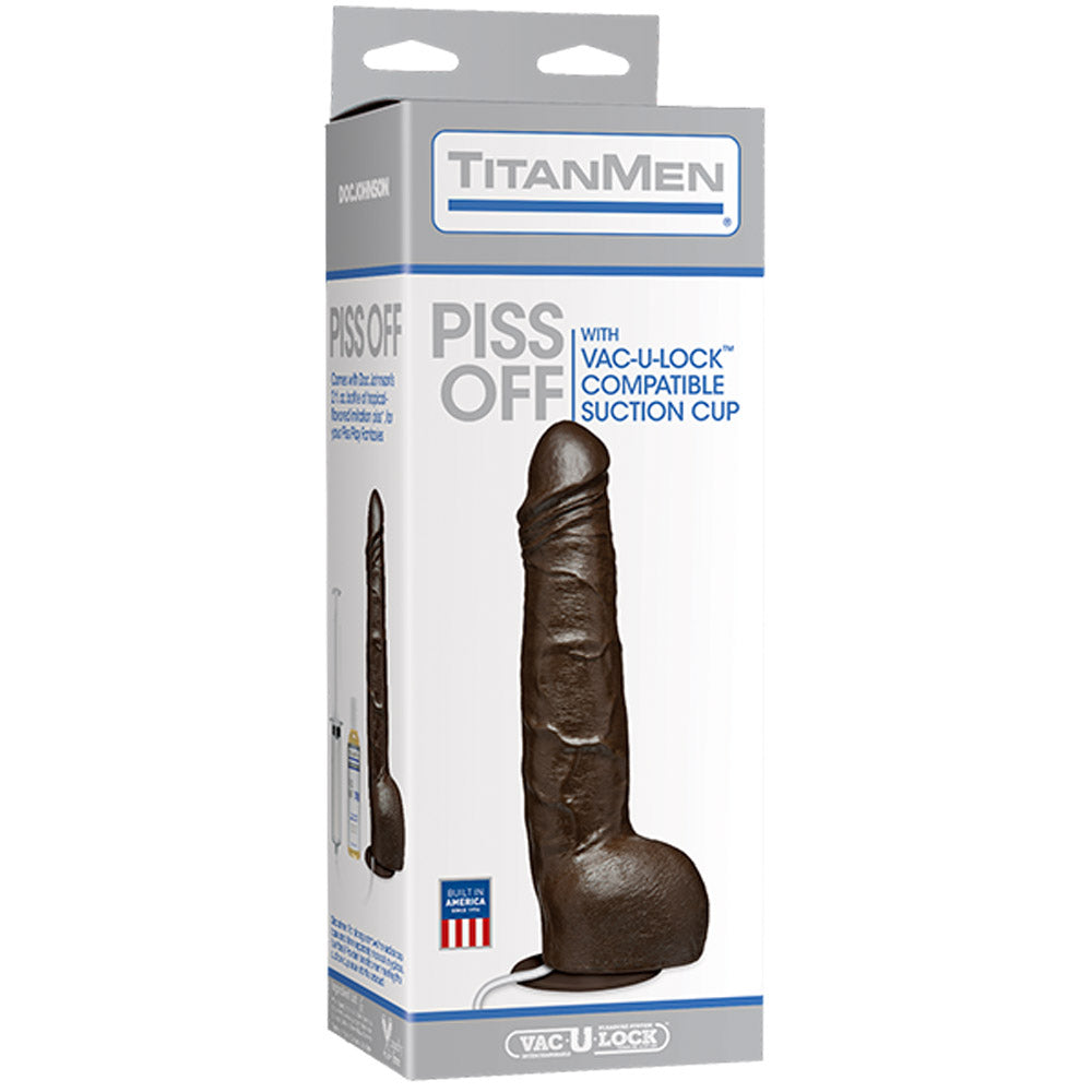 This full-scale PVC replica is designed to look and feel like a true erect penis and it pisses on command -- thanks to the included tropical-flavored imitation piss that looks real. Dong is incredibly firm, yet flexible with realistic detail and a suction cup for hands-free fun. The easy-to-use 2 oz. syringe can be easily refilled with the liquid of your choice. Compatible with Vac-U-Lock harnesses and accessories. Measures 10.5 in. long, 7.8 in. insertable, 2 in. wide.