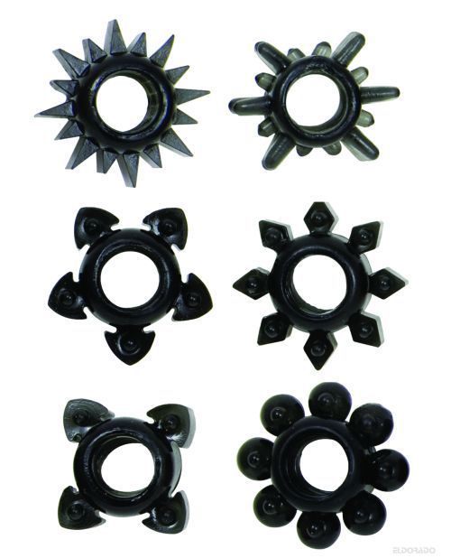 The Tower of Poer Cock Rings from Doc Johnson features six different shapes of stretch-to-fit TPR cock rings. Extend and expand your pleasure with these bad boys.