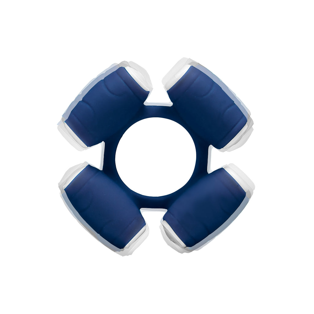 Turbo VIBRATING RING packs a powerful punch with four vibrating motors. Click on all four simultaneously or one at a time - you decide how much power you or your partner needs. The smooth silicone gives this reusable ring enough elasticity to fit any length or girth. 6.5 cm long, 3 cm inner diameter. Each motor is 3 cm long. Requires 2xbutton cell LR41 batteries in each motor (included). Running time is 40 minutes for each individual motor. Midnight Madness.